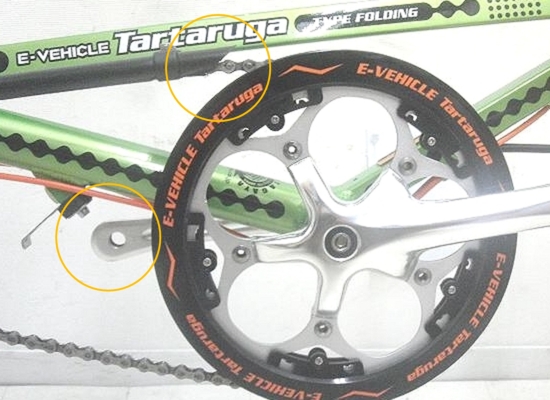 ゆっくり、じっくりと、 進化熟成が進められているはずの 20th 記念モデル。 前述の通りチェーンチューブの 前端の高さが合っていません。 また、クランクの ペダル取付穴の先の部分が 無用に長いのが分かります。 隠し切れない ルック車レベルの安っぽさ。 |