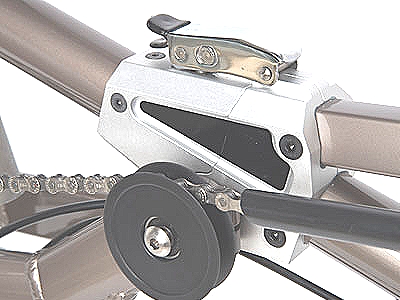 こちらは8速用チェーン使用時から継続使用しましたが、ダメージと呼べるほどのものは認められません。 掛かるチェーンテンションが小さいとはいえ、この持ちの良さは素晴らしい。 オリジナルより大径のため、フレームとの干渉を避け、取り付け位置を下にずらしています。 また、幅広ですので、より車体側に寄せるために、裏返して取り付けています。 |