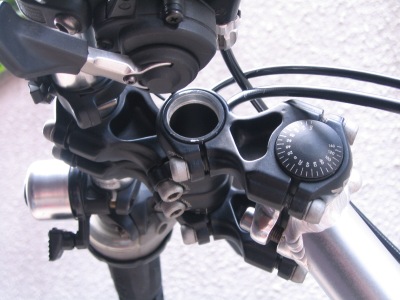 遠目のハンドルを、ハンドルポジションチェンジャーで引き寄せます。 乗り味がけっこう変わります。