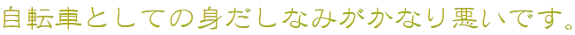 | 余計なことばっかり考えてるから、肝心の自転車本体が精彩を欠いてしまうのです。 | ||||||||||||||||||||||